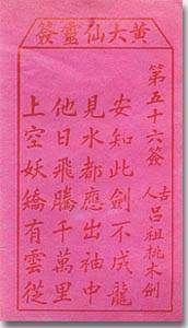 本签寓意吉祥,暗示一切都向好的方面发展。仙机见于签语的首两字——“安知”——怎么知道这把桃木剑不会成龙呢?将来修成正果,一见仙水,它就会化成一条龙,从吕祖的衣袖中飞腾而出,飞升千万里,空中还有彩云相伴随!