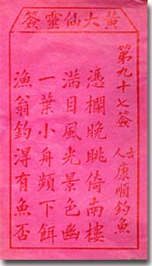 这支签中虽然并无凶险,但亦只空有良辰美景,钓鱼不得其法,有无收获,还是个未知数。倚着向南楼台的栏杆,满目的风光景色幽雅,水面上,有一叶小舟,只见康顺作渔翁打扮,频频下钓,至于有没有鱼获,那就不得而知了。